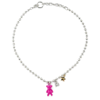 Silver Bead Necklace with Pink Teddy Pendant